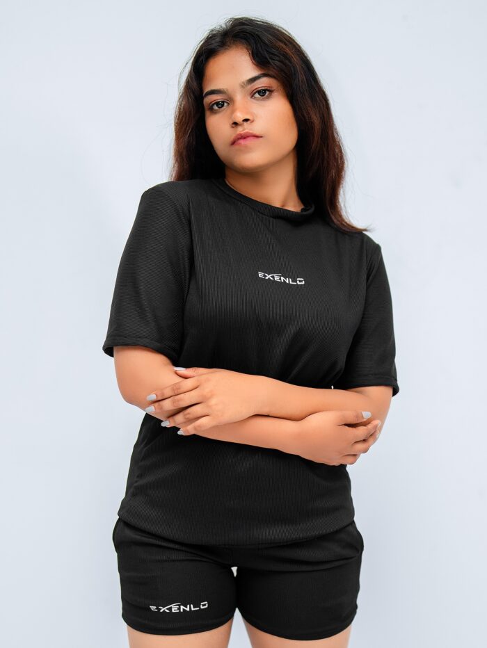 X-Series – Perfect for your active lifestyle. Made with stretchy rib material, this T-shirt and shorts combo offers comfort and flexibility, making it ideal for trips or casual outings.